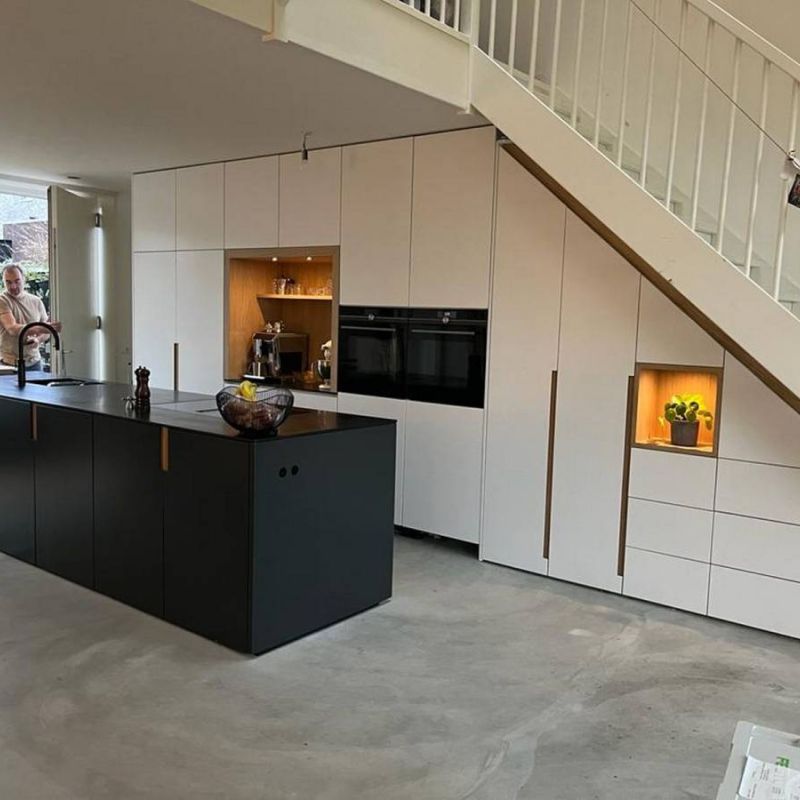 Onze werkwijze begint met een vrijblijvend gesprek. Tijdens dit gesprek bespreken we uw wensen en ideeën. Aan de hand van deze input creëren we een 3D-visualisatie van uw toekomstige keuken, zodat u een helder beeld krijgt van het eindresultaat. De enige uitzondering in ons proces is de technische voorbereiding van gas, electra, water en afvoer, die door gespecialiseerde professionals wordt uitgevoerd.